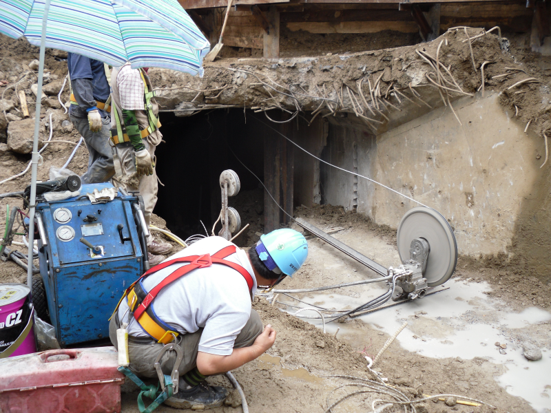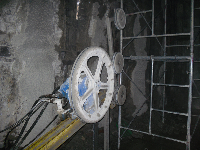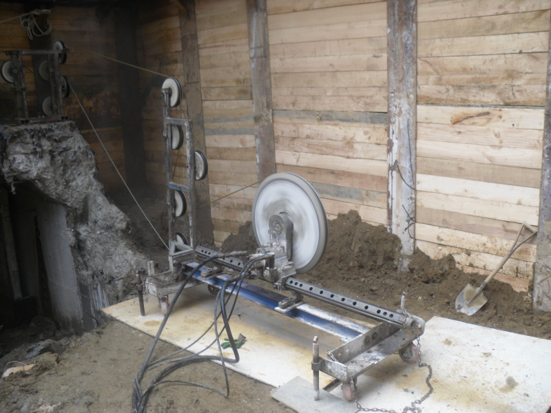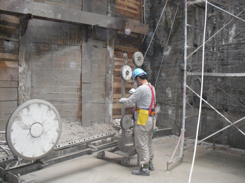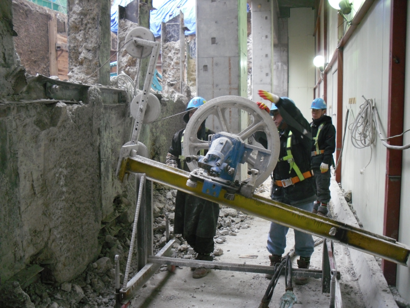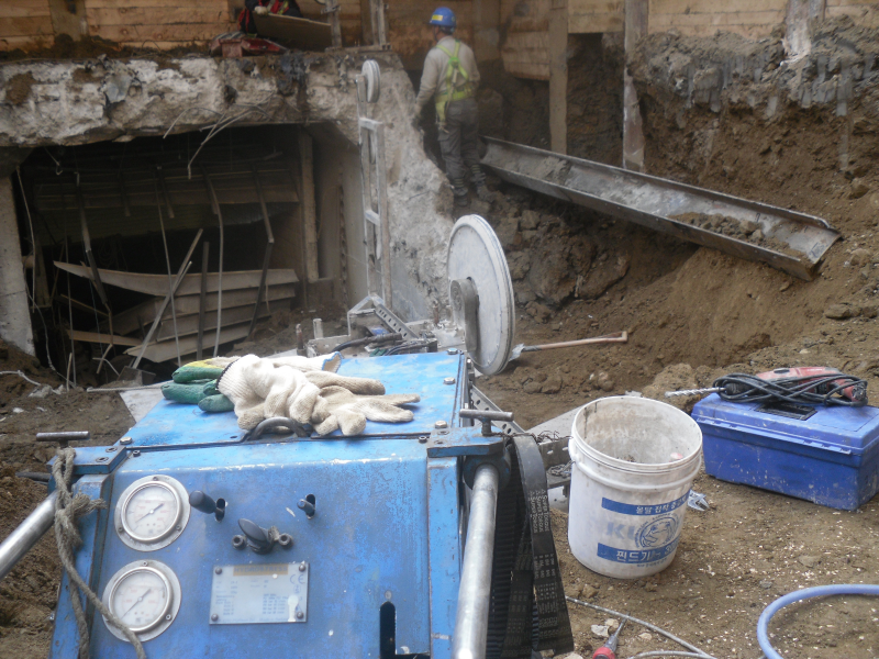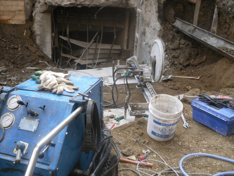 좁은 공간의 현장에서 작업중인 분리형 와이어쏘 27마력,35마력,54마력 사진