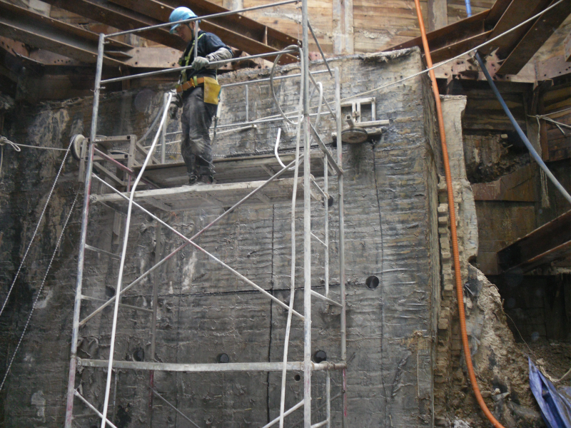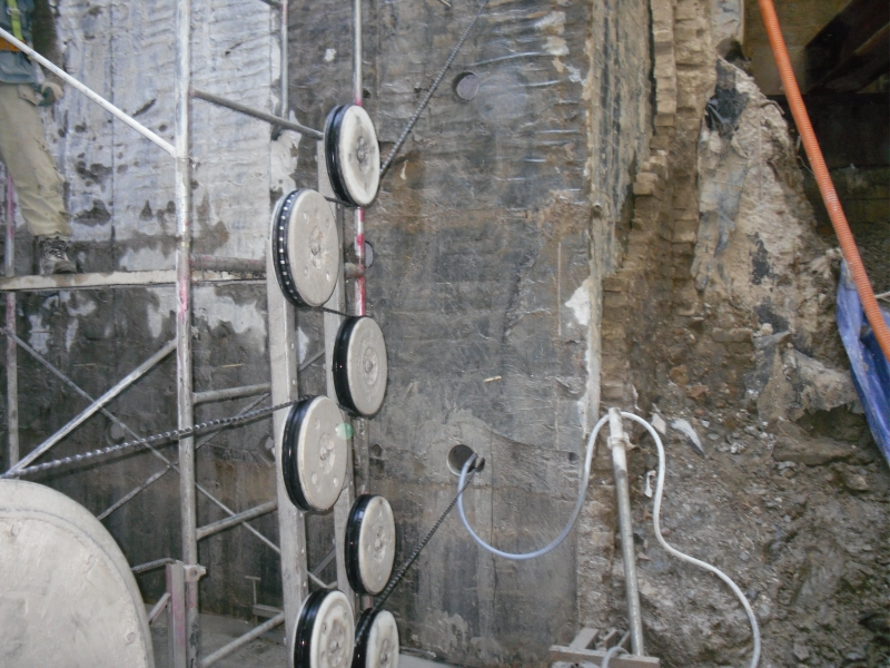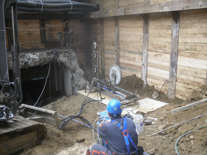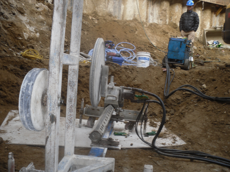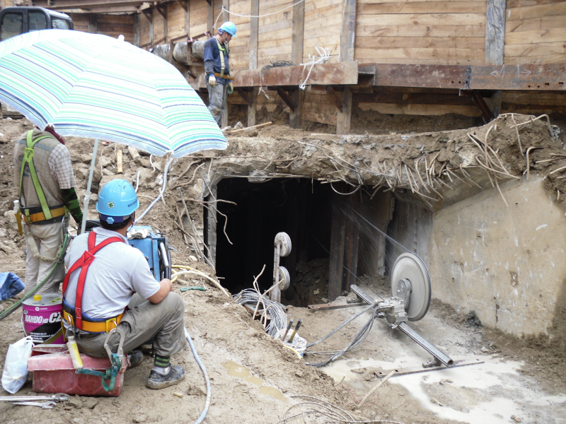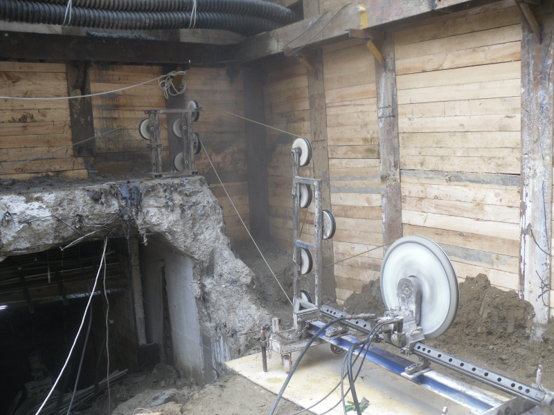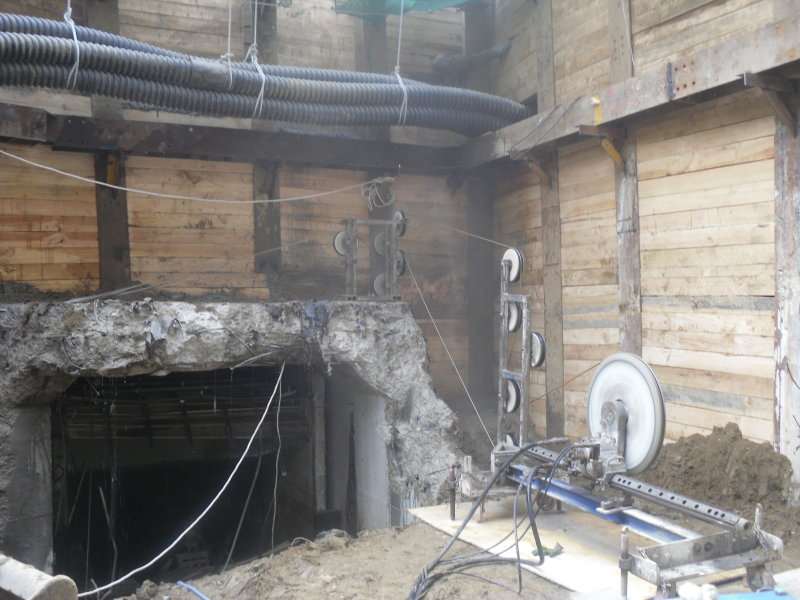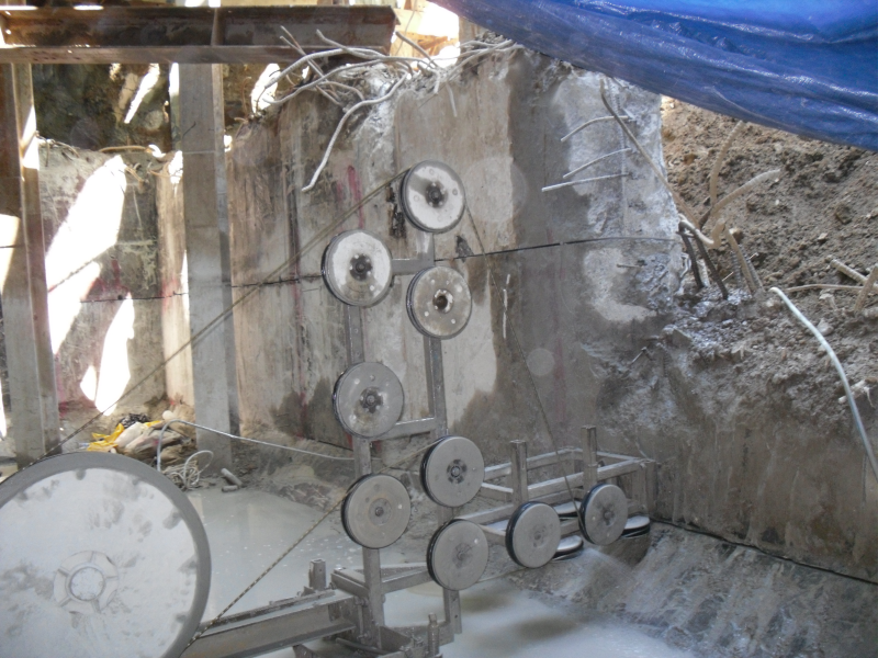 좁은 공간의 현장에서 작업중인 분리형 와이어쏘 27마력,35마력,54마력 사진