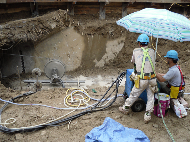 좁은 공간에서 작업이 용이한 분리형 다이야몬드 와이어쏘 27마력,35마력,54마력 현장 모습