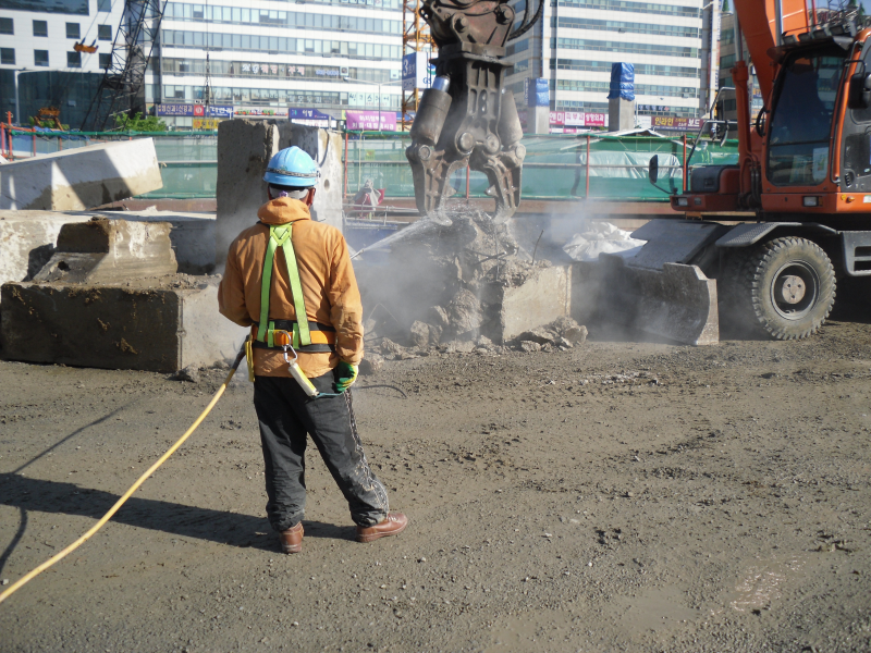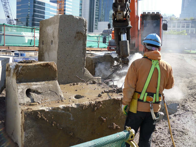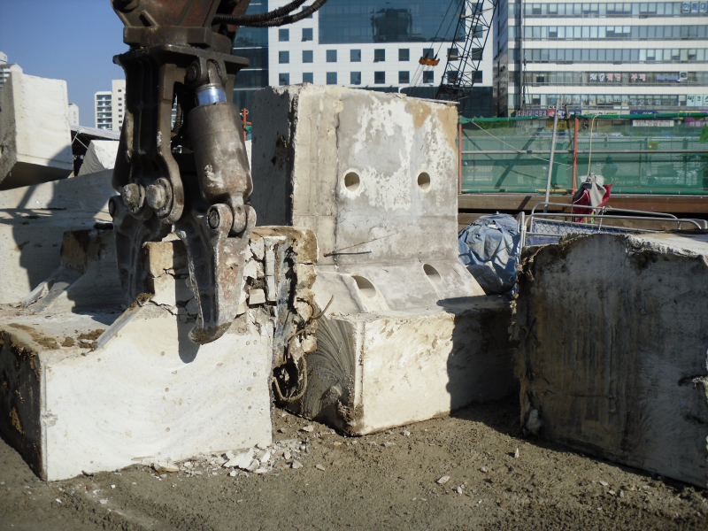 와이어쏘 커팅 콘크리트 구조물 인양후 크라샤 파쇄 작업
